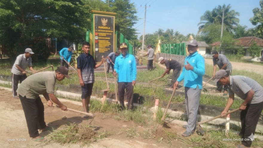 Semangat gotong royong Kepalo Tiyuh Marga sari dan seluruh Aparatur dalam rangka peringatan HUT TUBABA ke 17